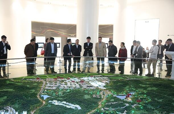 张建国(中)参观园区沙盘,了解项目规划布局及产业创新相关情况,