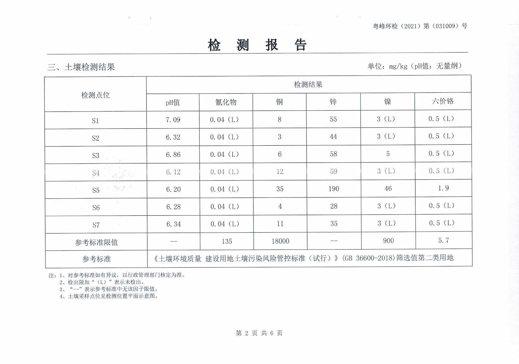 中德金属生态城表面处理中心2021年3月份土壤检测报告公示