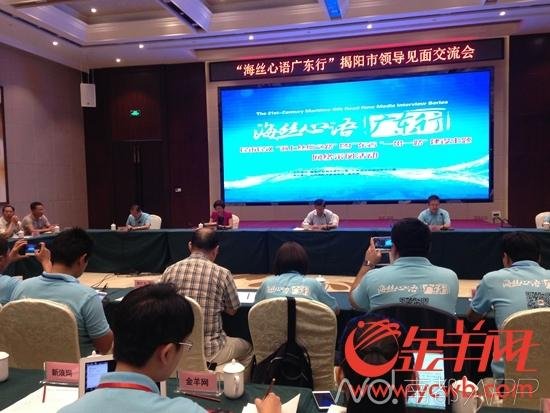 10月16日上午,由中央网信办、广东网信办主办,汕头市委宣传部、潮州市委宣传部、揭阳市委宣传部和金羊网联合承办的“海丝心语广东行”——民访民议“海上丝绸之路”暨广东省“一带一路”建设主题网络采风活动(下称“海丝心语广东行”)进入行程的最后一天,20位网络名人及媒体记者与揭阳市有关领导就积极参与21世纪海上丝绸之路建设展开交流。会后,采风团还走访了位于揭阳市玉窖镇的中德金属生态城,共同见证这座有着“五金之都”之称的制造业城市,是如何走上一条全新的生态建设与发展道路。